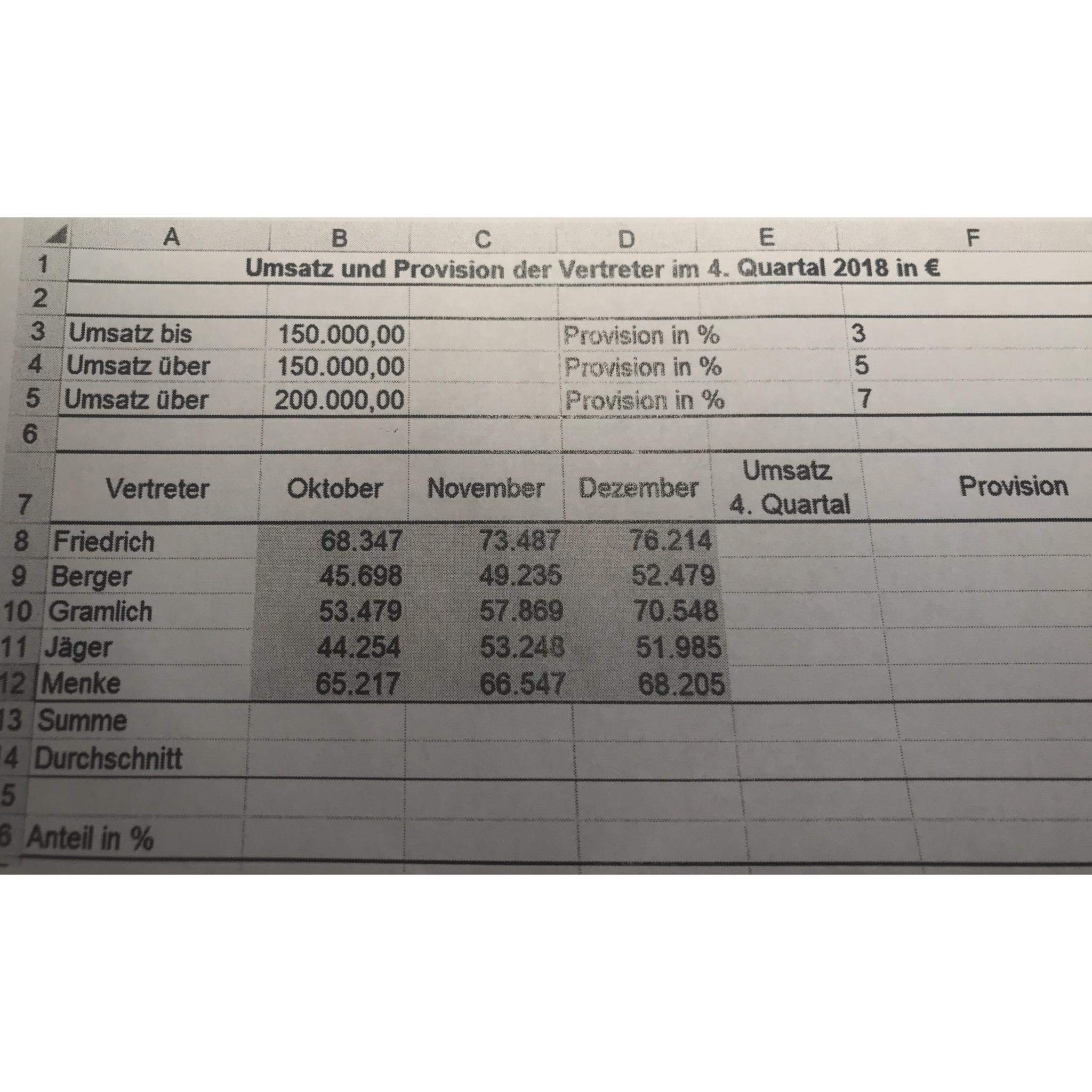 Wie Berechnet Man Den Anteil In Den Umsatz 4 Quartal Und Die Provision Informatik Excel Excel Formel